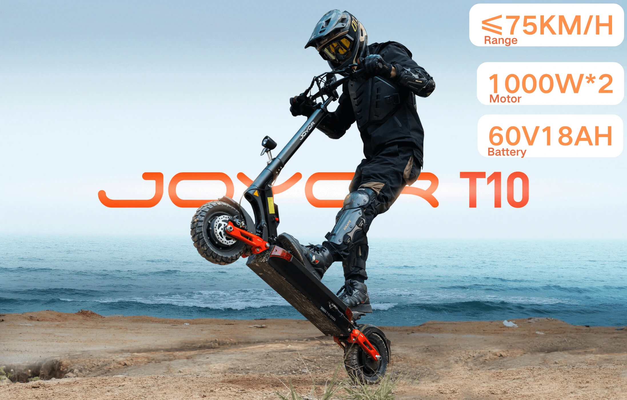Joyor T10 Electric Scooter, 2*1000W Motor, 60V 18Ah Battery, 10 inch Tires, 60km/h Max Speed, 75km Range, Front & Rear Hydraulic Disc Brakes, Front & Rear Hydraulic Spring Shock Absorbers
